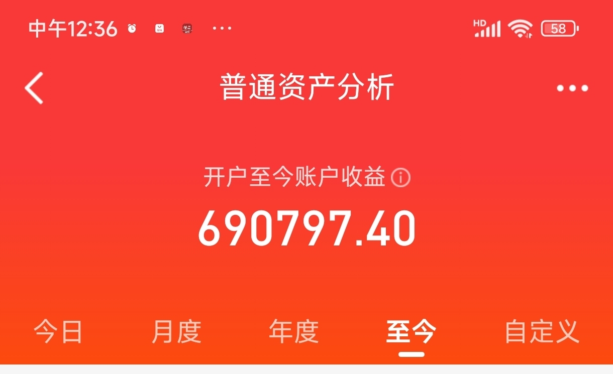 开户至今毛的收益69个,纯收益也就50个(按最低存银行的利息也有快20个了)总活