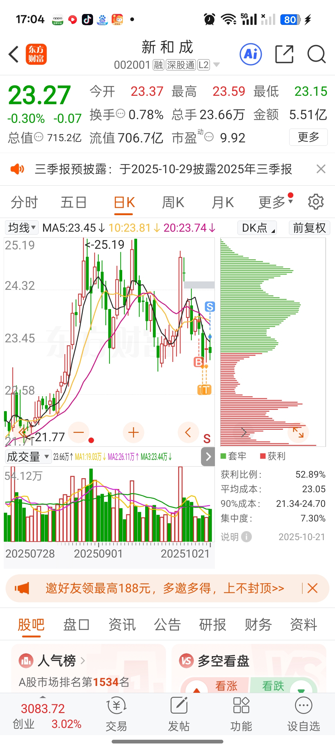 $新 和 成(SZ002001)$ 闹心,耗了五天,盈利500,扣了分红税,赚了300,浪费了一波大好行情