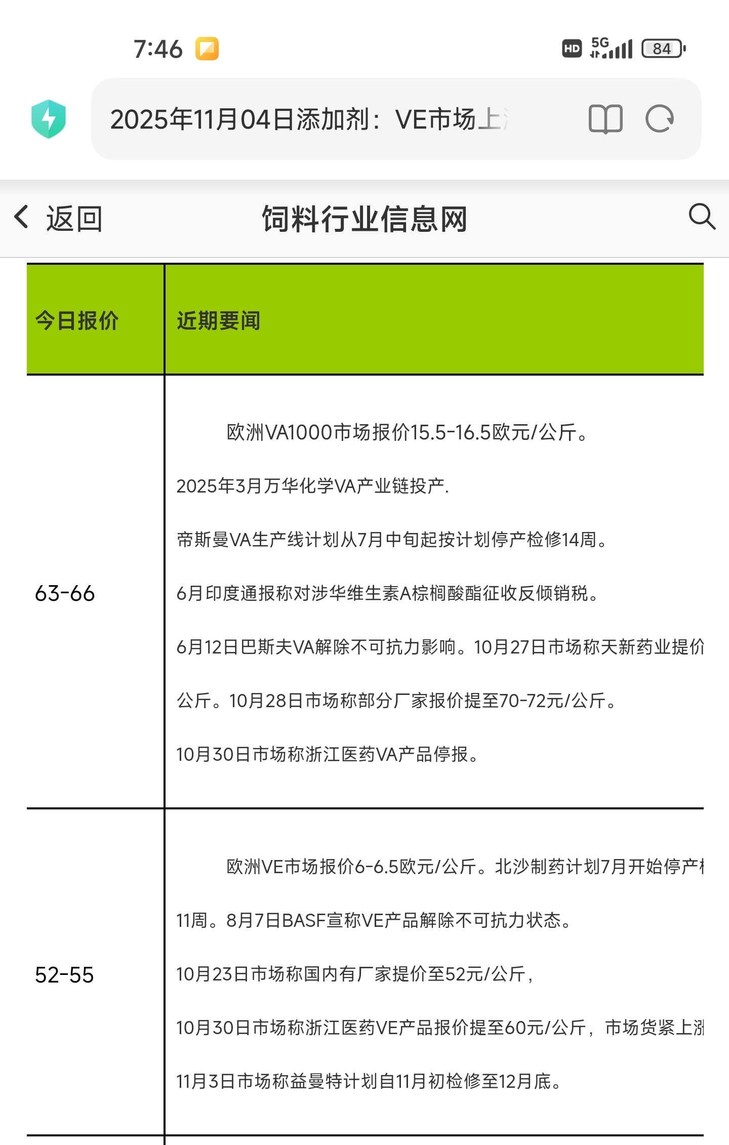 VA,VE,蛋氨酸开始提价,温和的通胀开始。