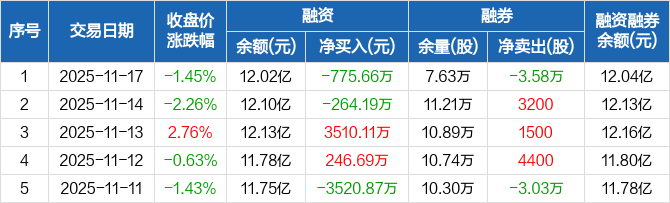 新和成:融资净偿还775.66万元,融资余额12.02亿元(11-17)