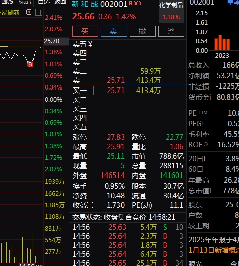 $新 和 成(SZ002001)$ 继续买进的第六天