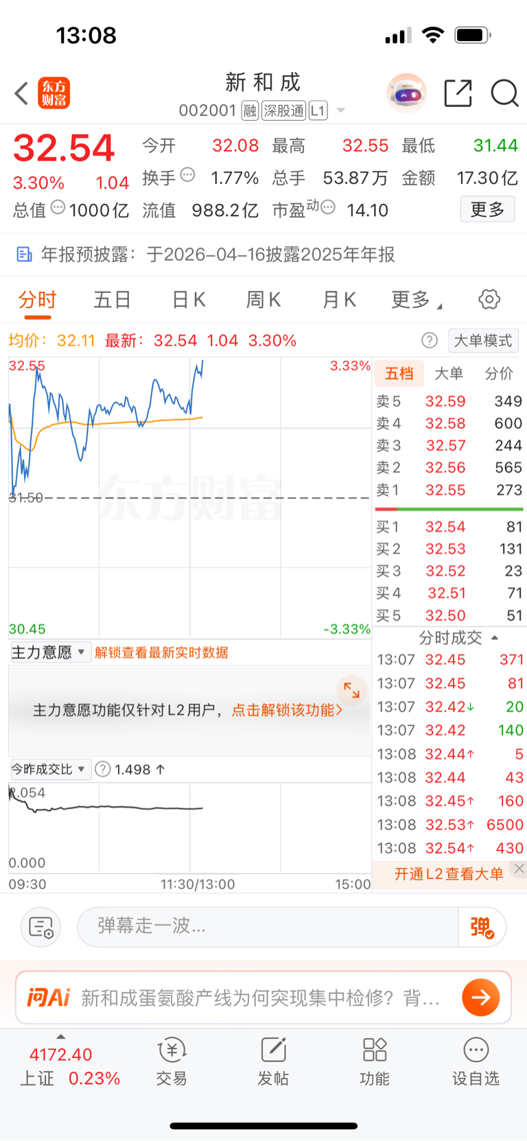 $新 和 成(SZ002001)$ 拿了四年总算如愿,感恩!