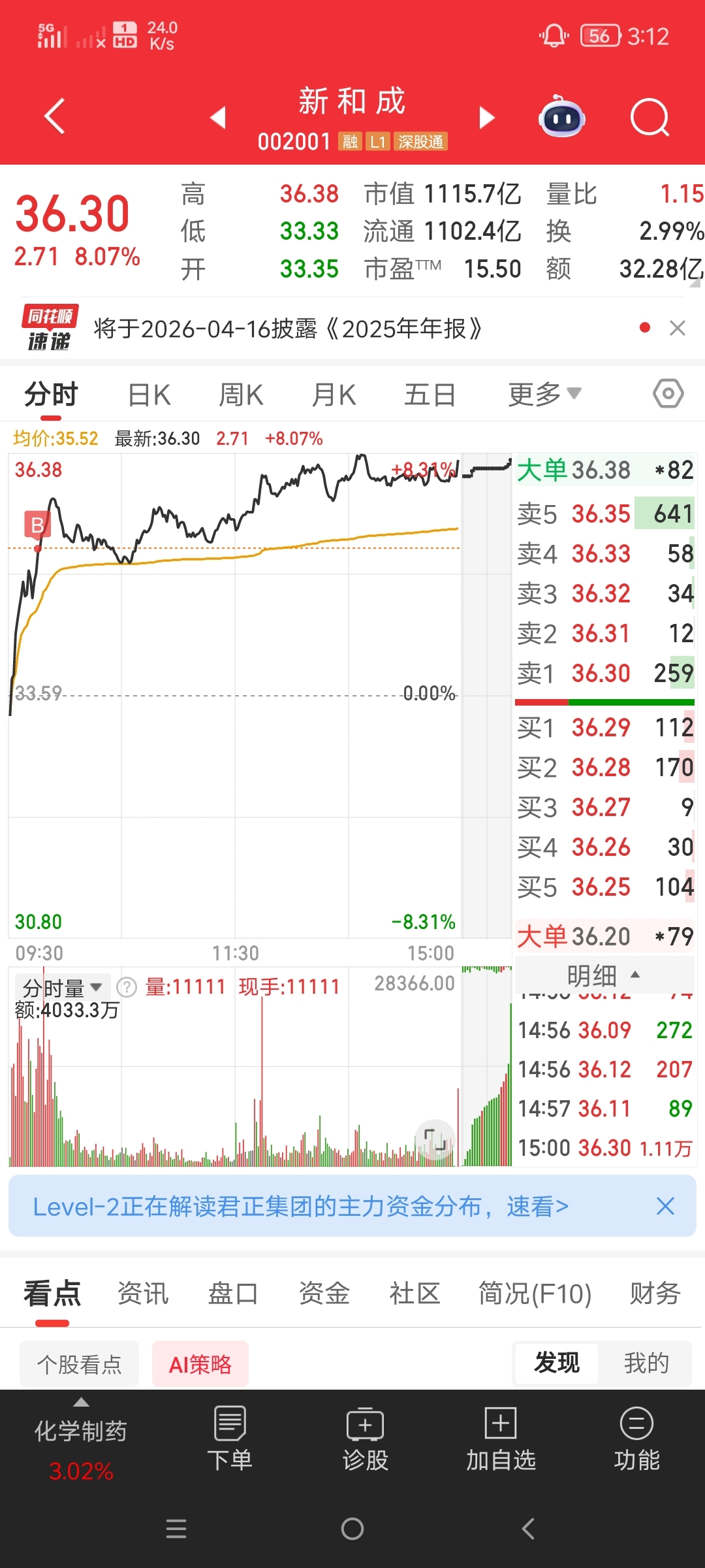 周五早盘提示了主力介入,瞬间我们也跟进,唯一遗憾没涨停.