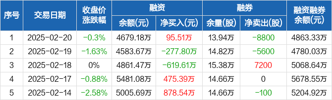 伟星股份:融资净买入95.51万元,融资余额4679.18万元(02-20)