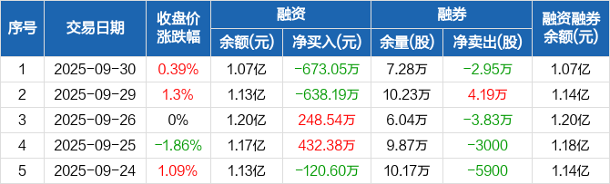 伟星股份:融资净偿还673.05万元,融资余额1.07亿元(09-30)