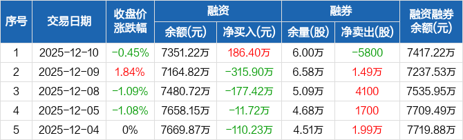 伟星股份:融资净买入186.4万元,融资余额7351.22万元(12-10)