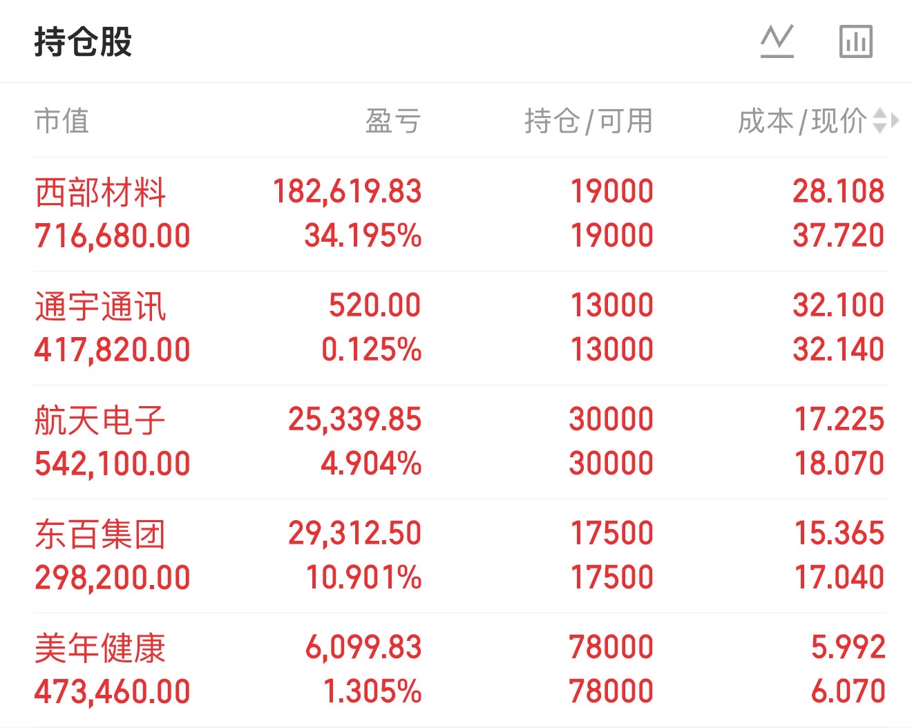 周五竞价表现那么强势,开盘也是放量的,拉高散户成本可能性更大,出货应该会高位分时横盘震荡一会,而且现在卫星通讯和商业航天概念还在走强,通宇的题材叠加太强了,很难不吸引资金关注,所以更多的可能性还是洗盘蓄力,今天不出意外会平开去适当收复周五阴线,如果走出强势的反包那就是明显的反转了,可以坐等连板了,再等一等大肉的出现,曙光不远了。