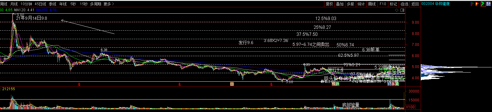 002004华邦健康整体K线走势:老铁们可以按照%比线涨幅做出阶段大T