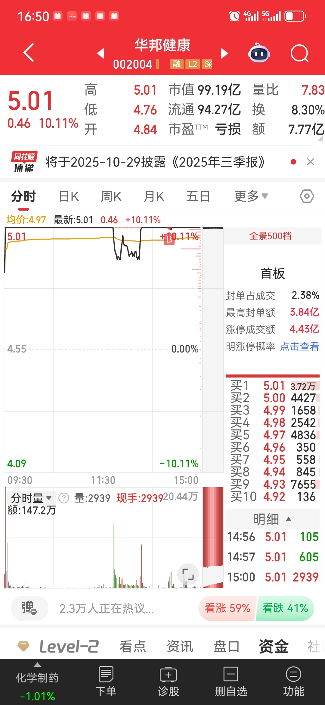 $华邦健康(SZ002004)$ 今天板上排了一笔,希望下周吃点肉