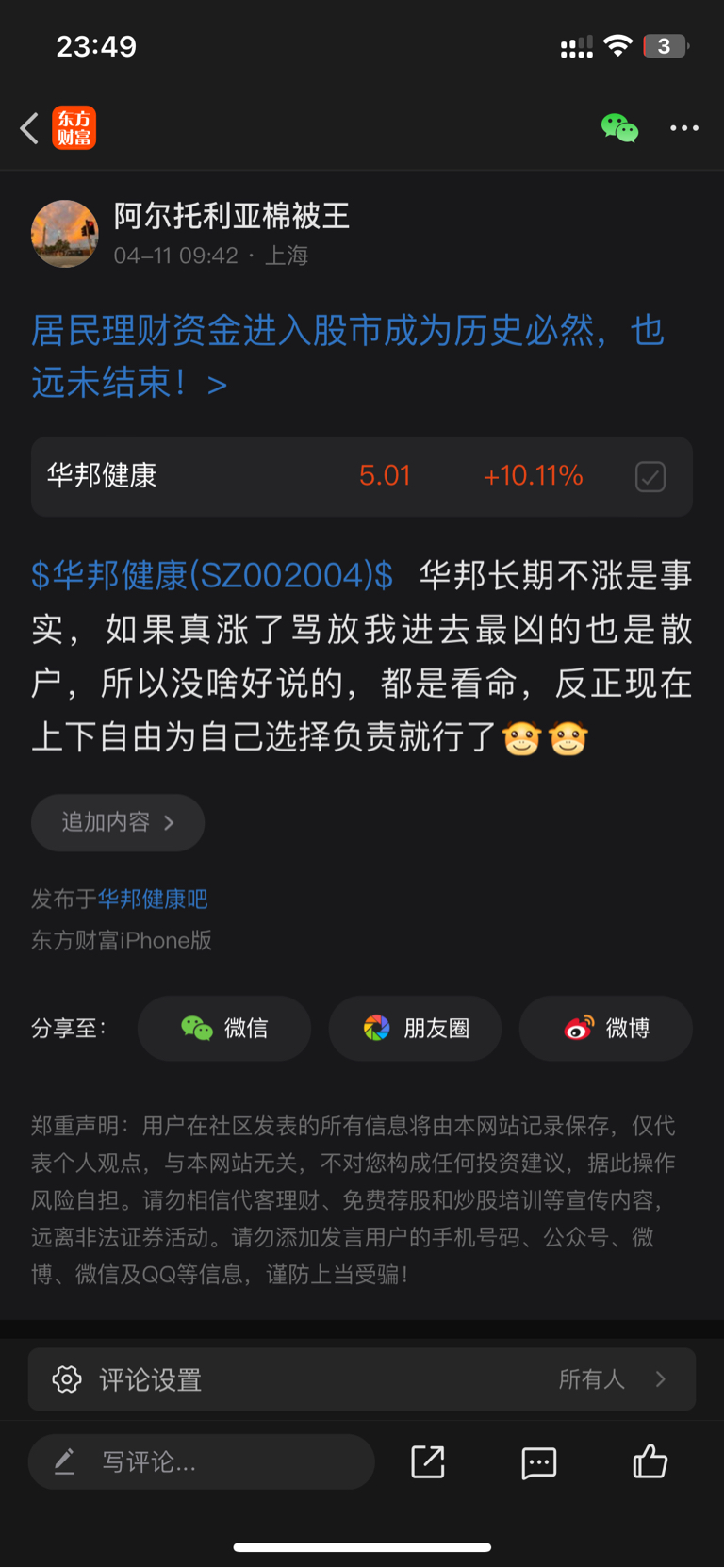 温馨提示: 1.根据《证券法》规定,禁止编造、传播虚假信息或者误导性信息,扰乱证券市场;2.用户在本社区发表的所有资料、言论等仅代表个人观点,与本网站立场无关,不对您构成任何投资建议。用户应基于自己的独立判断,自行决定证券投资并承担相应风险。《东方财富社区管理规定》