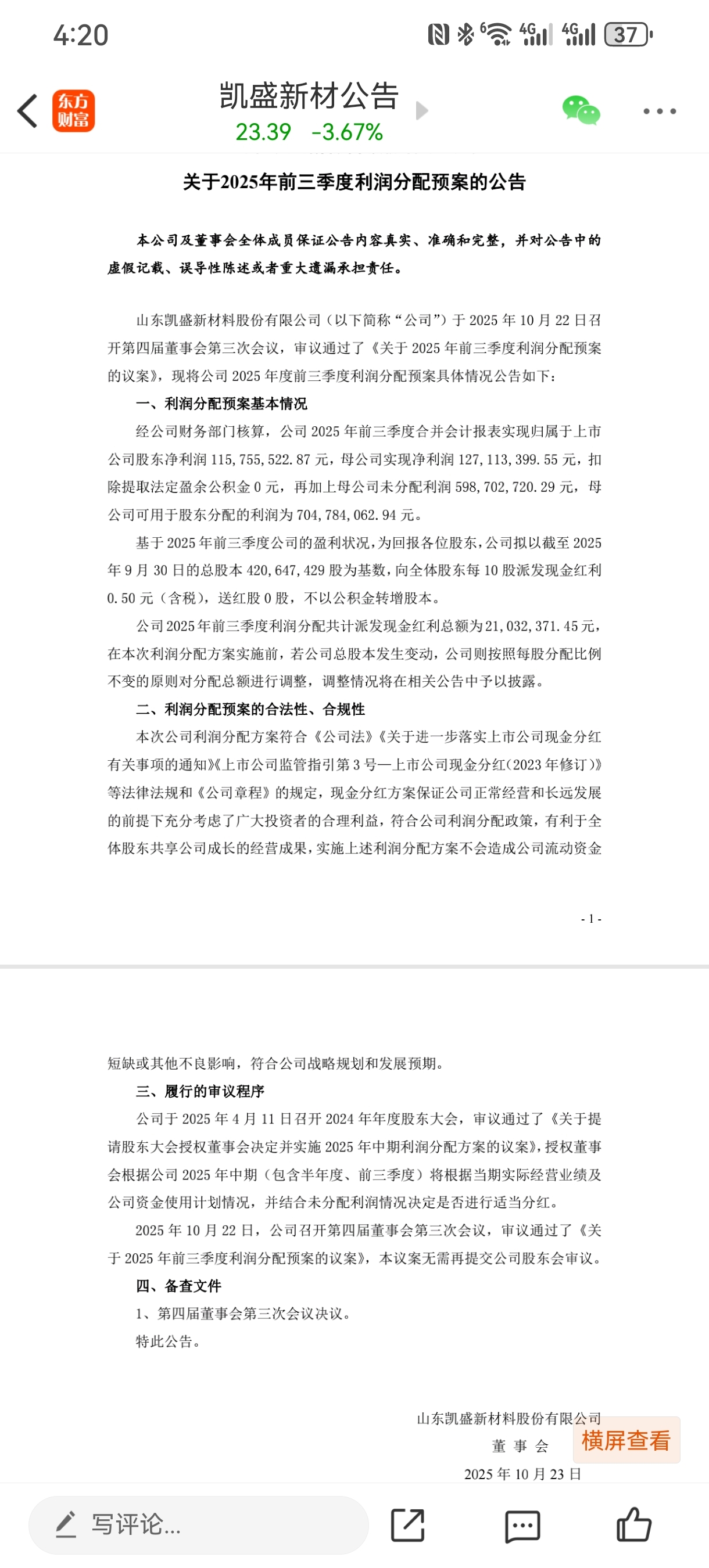 根据凯盛新材2025年三季报的分红方案,每10股派0.5元(含税) 。华邦健康持有凯盛新材167,216,000股,占总股本39.75%。