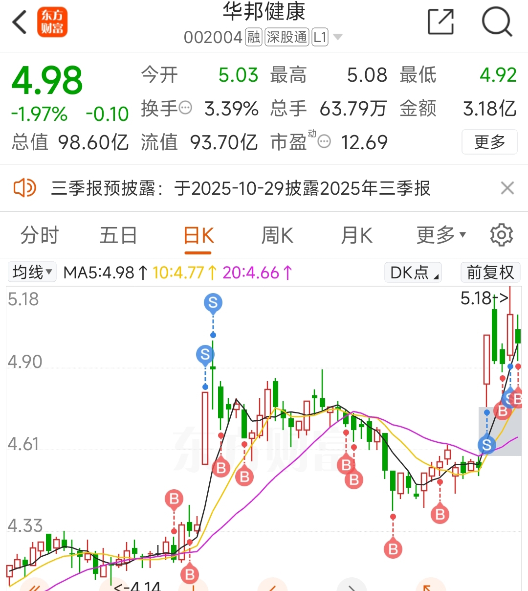 $华邦健康(SZ002004)$ 每天不是买就是卖!能赚一分是一分!