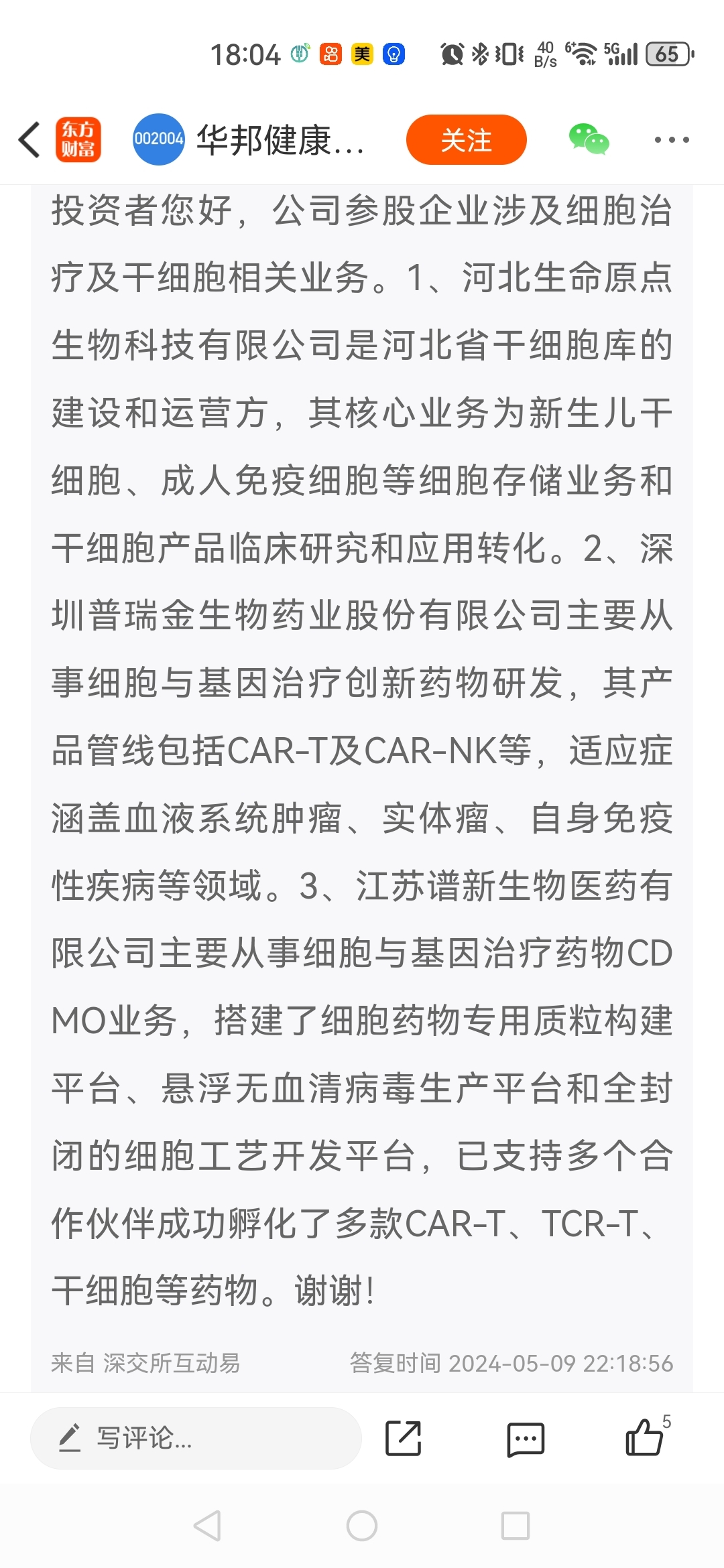 $华邦健康(SZ002004)$ 投资了两个CAR-T公司