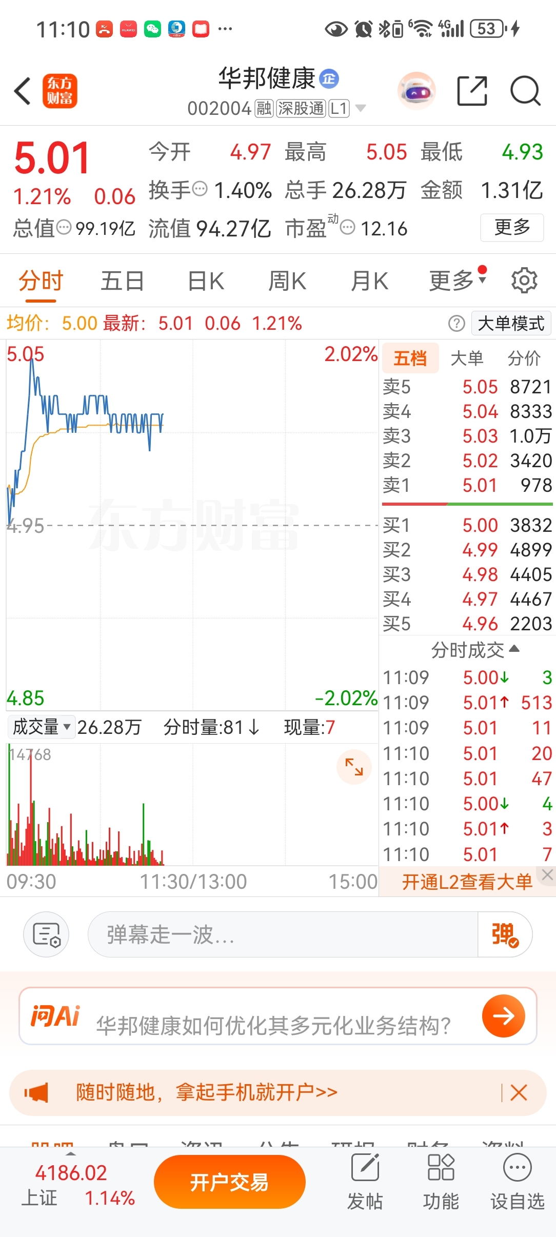 $华邦健康(SZ002004)$ 深成指涨两个点了,你能不能支棱起来?涨一点万手卖单就挂着是怎么回事?谁能解释一下?
