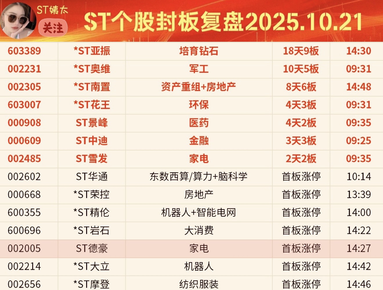 ST个股封板追踪:ST德豪