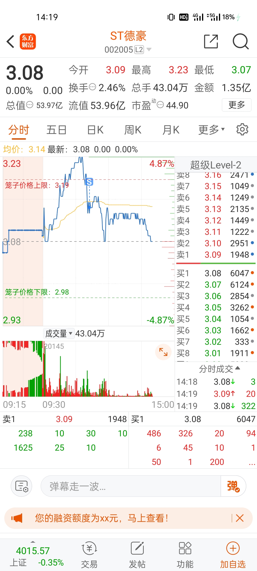 $ST德豪(SZ002005)$ 走的好好的,真没想到会这样砸,2个点卖了,这波小主升浪吃完了,感谢,择机做t接回