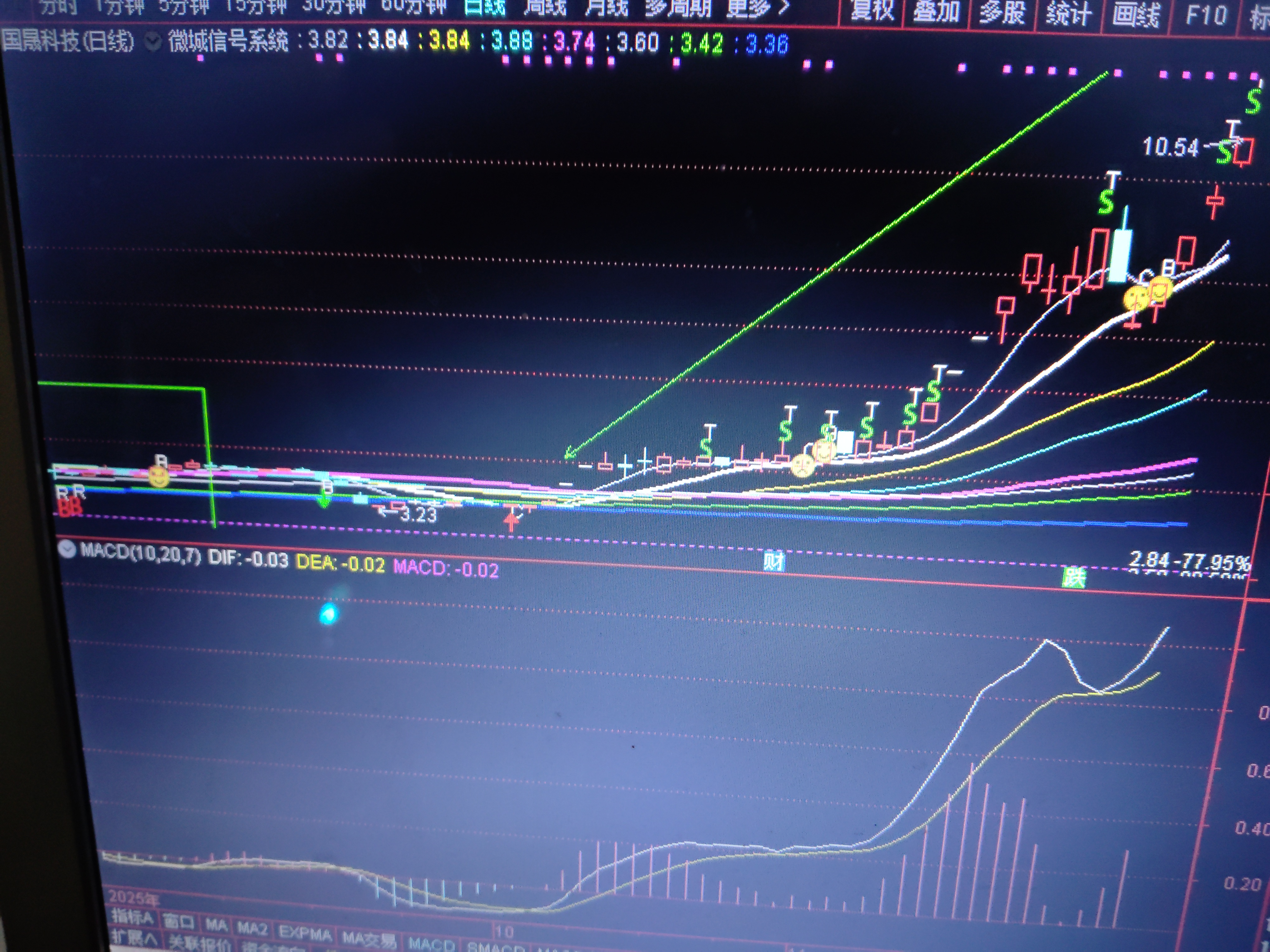 金冠股份在通道内震荡盘底,已经打到下趋势线支撑位了,走势复杂维持震荡局面,国晟科