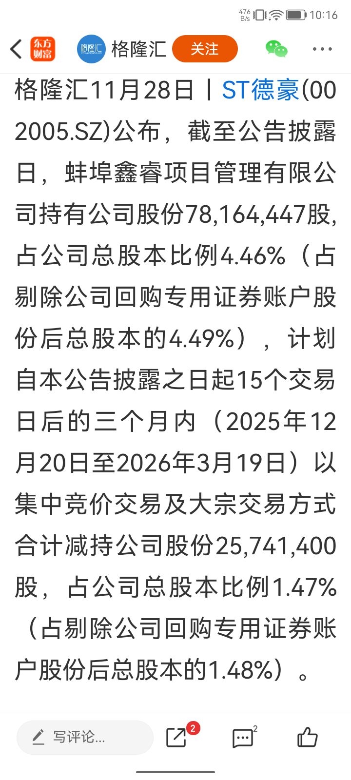 德豪(SZ002005)$中小股东赶快撤离,避免损失:大股东清仓式减持20号开始
