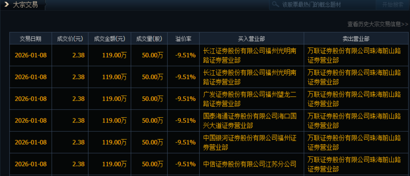 今天又有大宗了,6笔共300万股,今天折价率有点多9.51%,今天卖方营业部换了