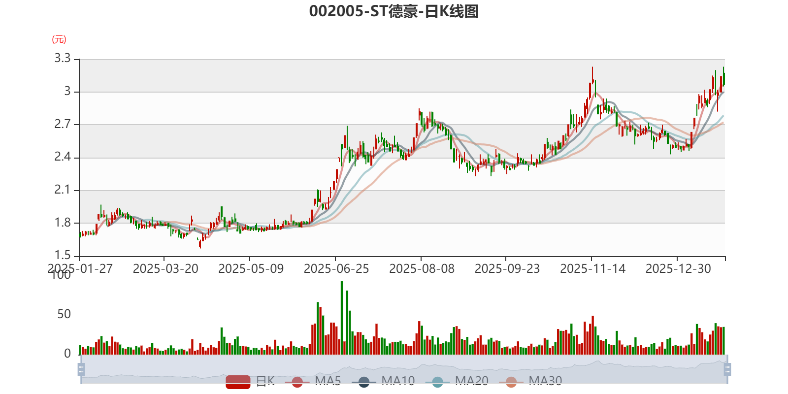 中证智能财讯 ST德豪(002005)1月26日晚间披露2025年度业绩预告,预计2025年归母净利润2200万元至3300万元,上年同期亏损1.99亿元;扣非净利润亏损1.33亿元至1.42亿元,上年同期亏损2.06亿元;基本每股收益0.0126元/股-0.0188元/股。以1月26日收盘价计算,ST德豪目前市盈率(TTM)约为163.03倍-244.54倍,市净率(LF)约14.57倍,市销率(TTM)约7.94倍。