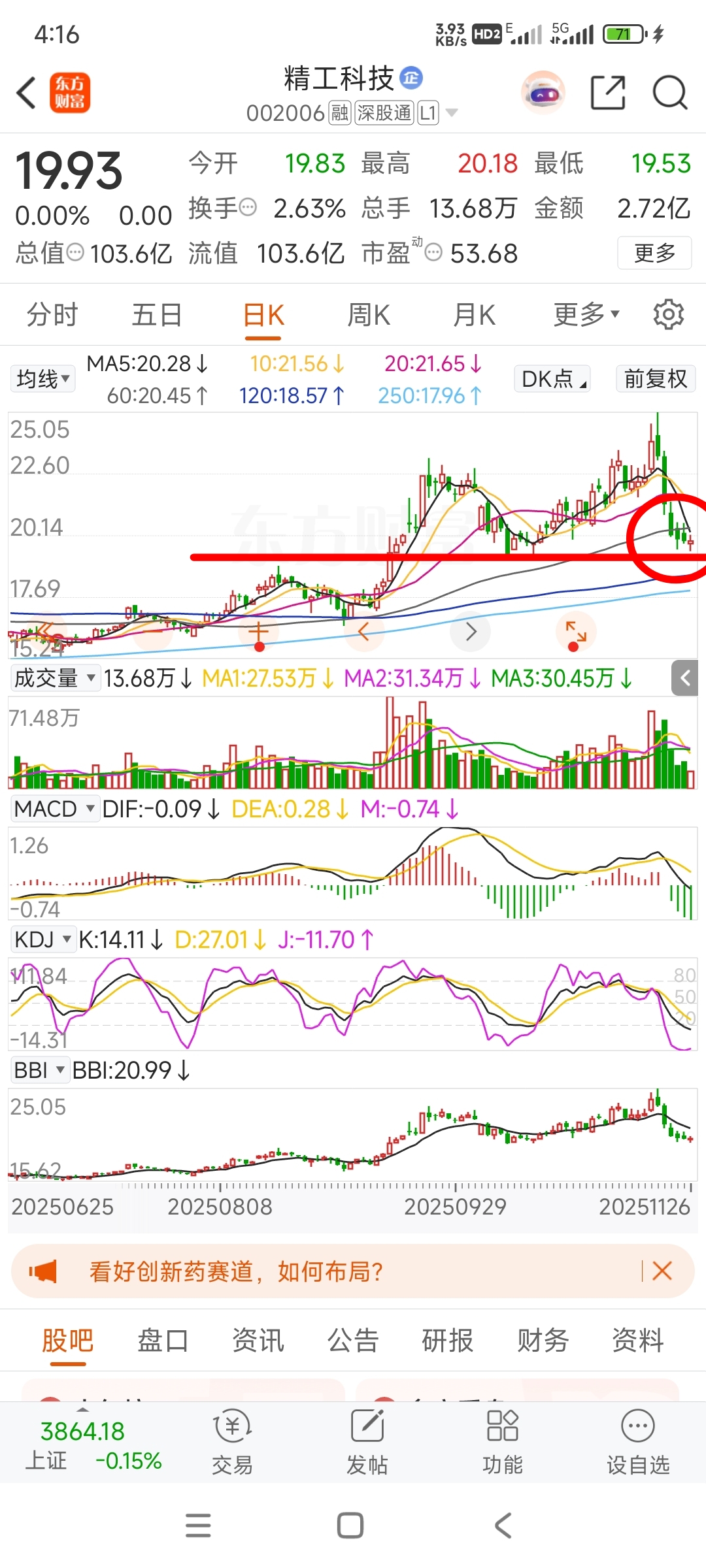 连续三天都没有在往下探。星期四五在这个位置继续有支撑。基本就稳了。关键三季报想当