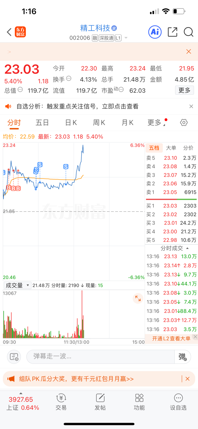 $精工科技(SZ002006)$ 服了!我被主力拿捏死了!