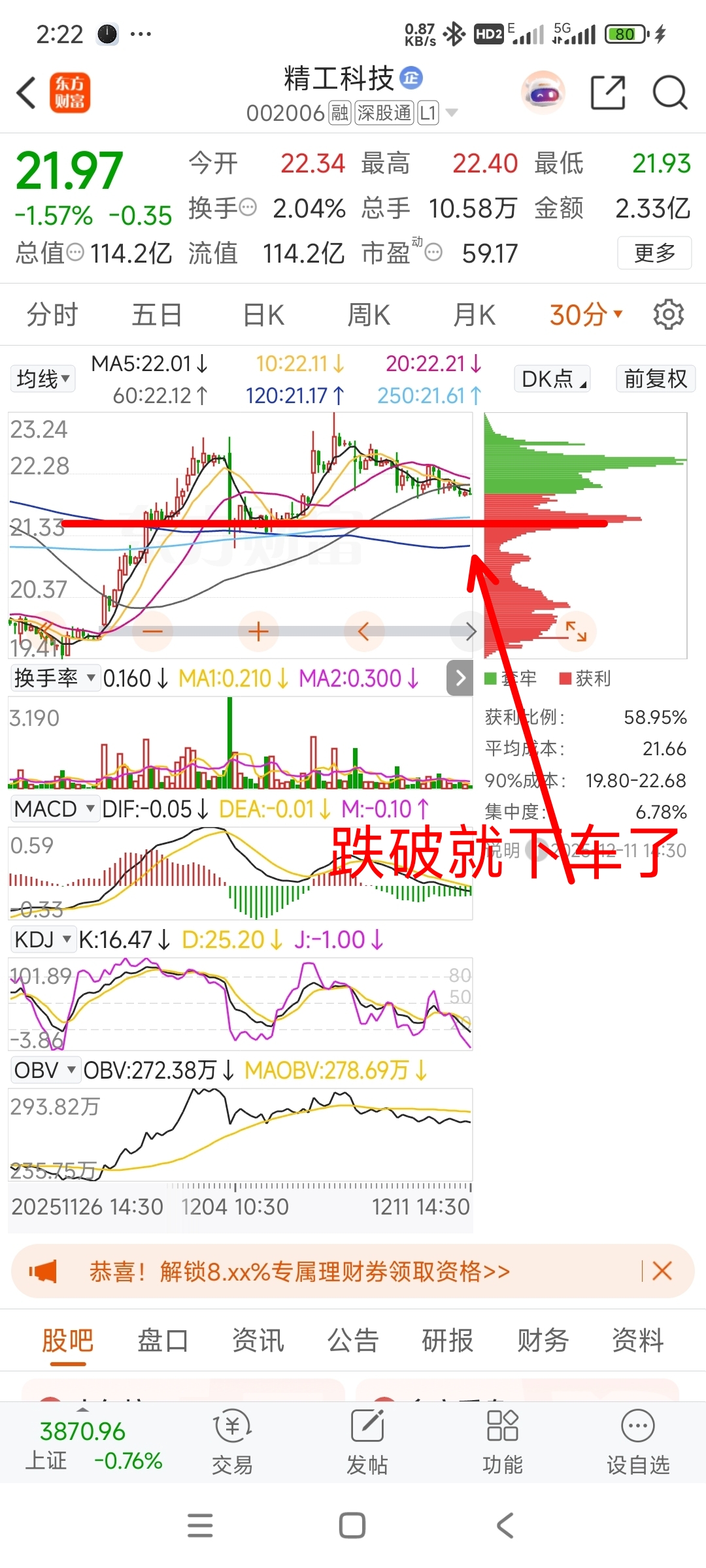 $精工科技(SZ002006)$ 要设止损位。没办法