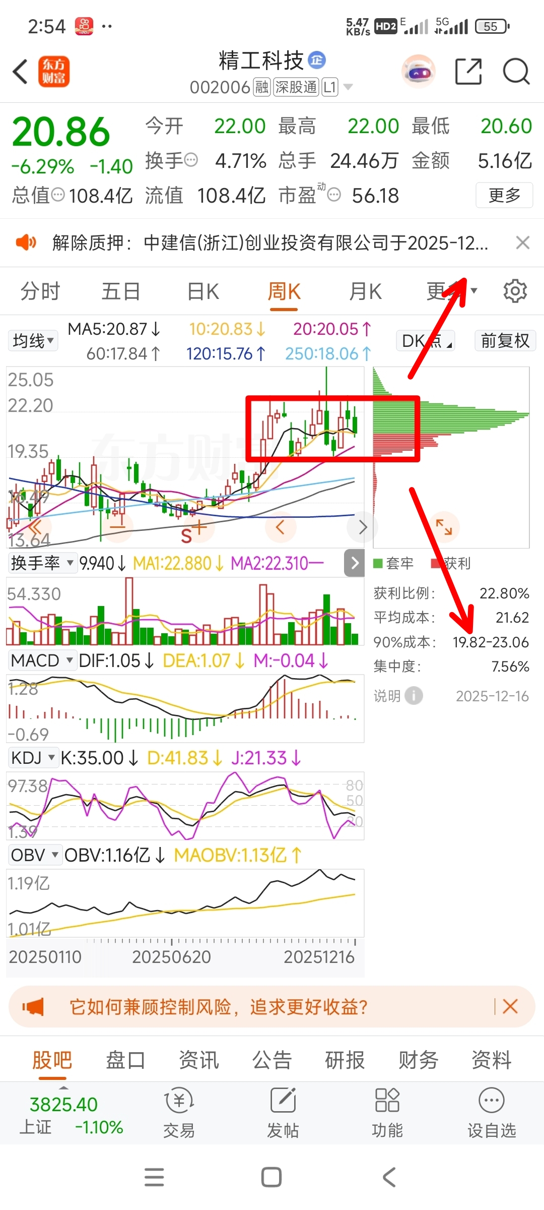 $精工科技(SZ002006)$ 周线走箱体震荡行情了。看样子很难突破前高了。可以考虑减仓