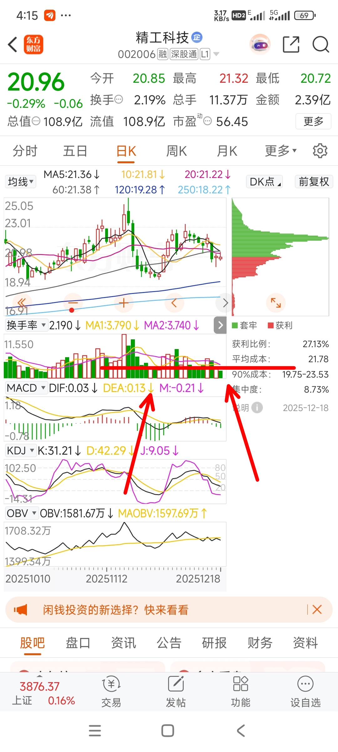 $精工科技(SZ002006)$ 量能缩到地量了要返攻了吗?