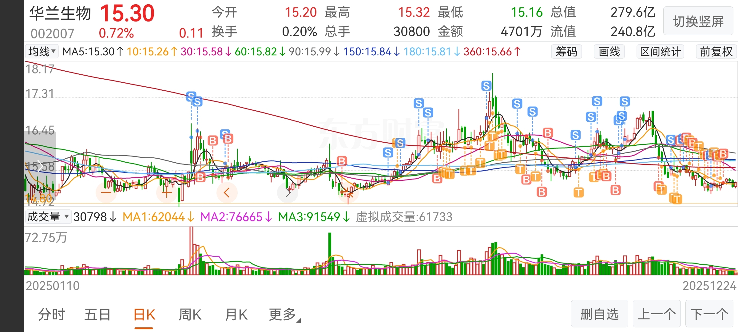 $华兰生物(SZ002007)$ 不T了锁仓了不到14.75不加仓