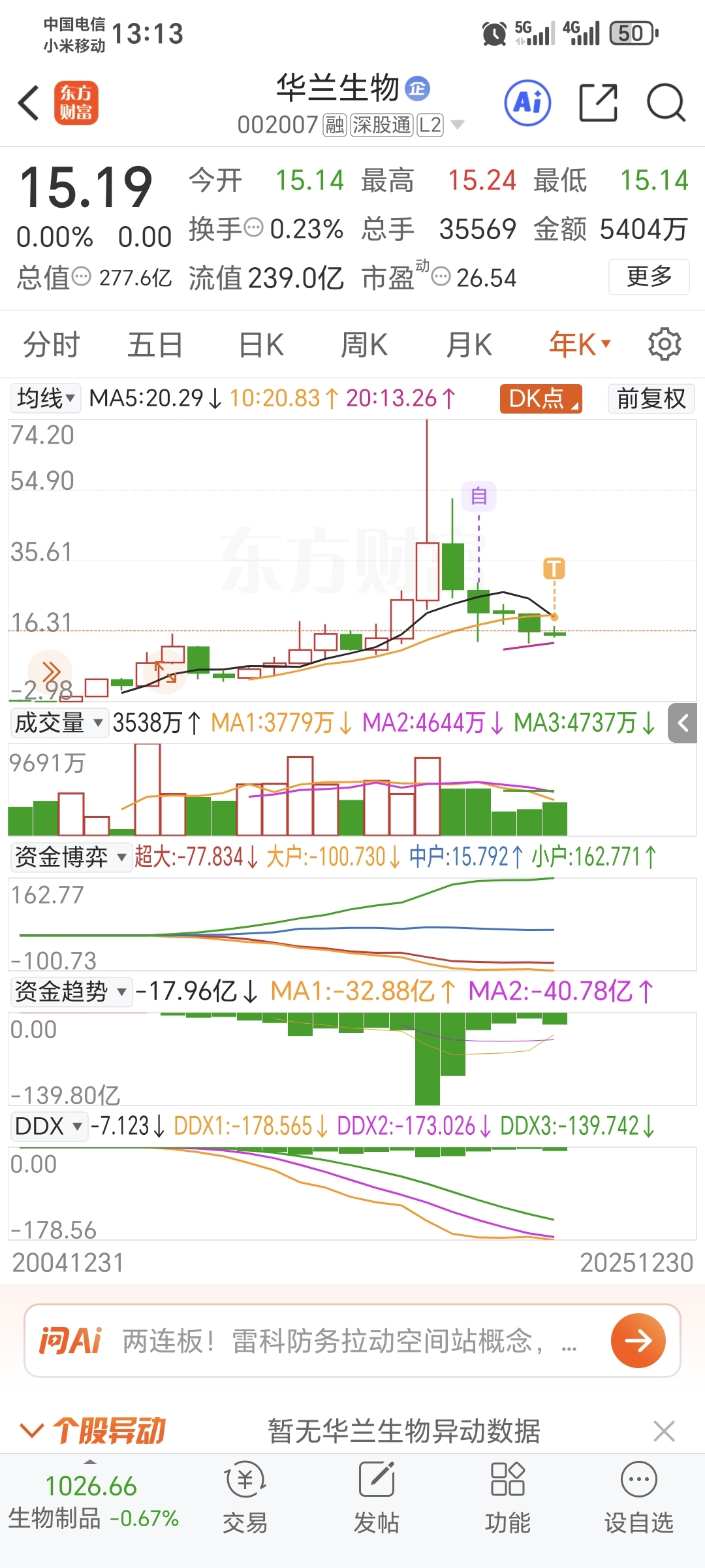 $华兰生物(SZ002007)$ 连跌五年了,退市潜力股?
