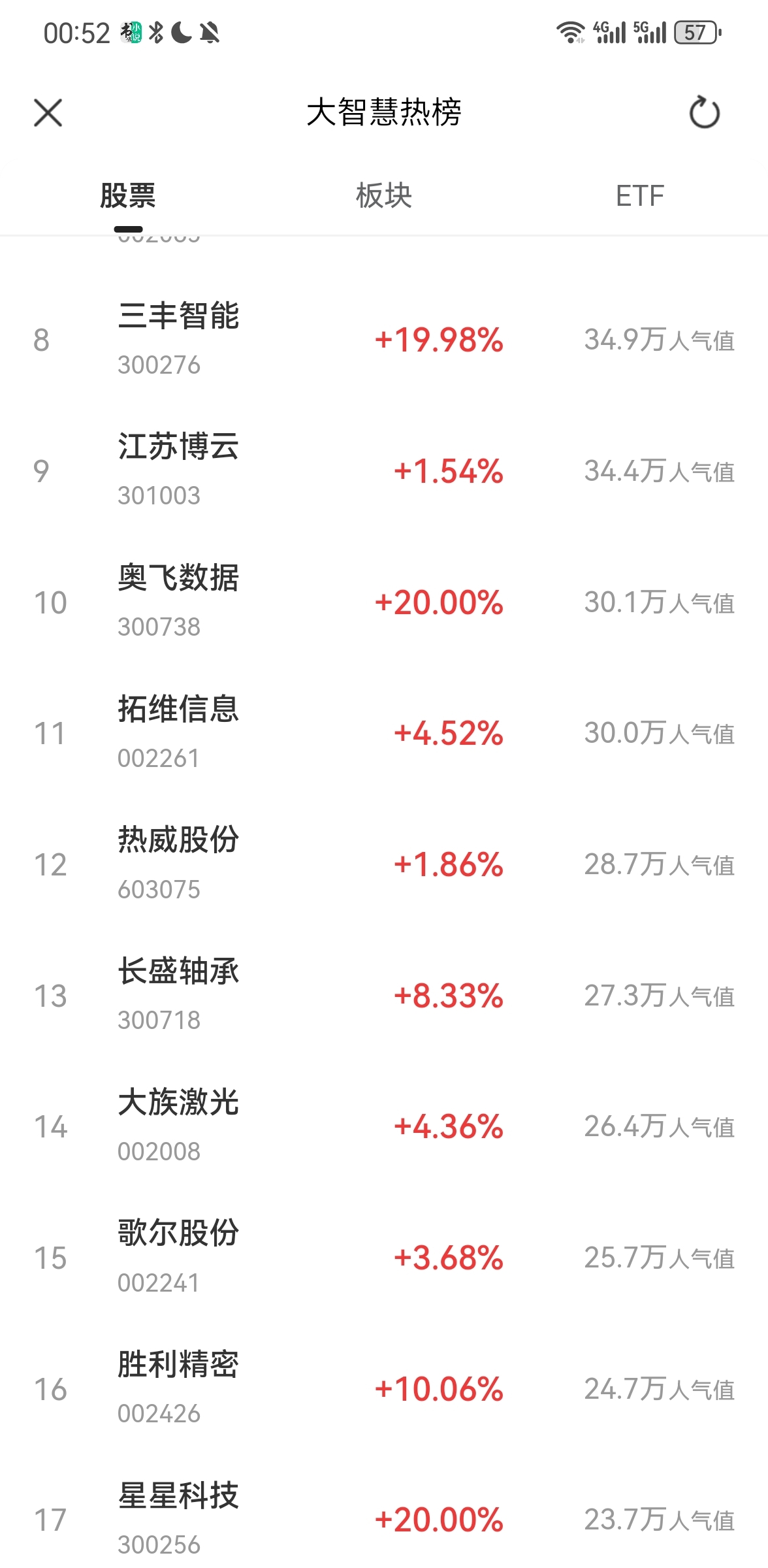 $大族激光(SZ002008)$ 大族激光在大智慧排行榜已经飙升至第14了