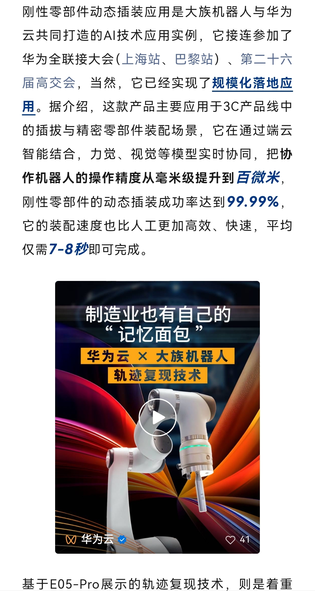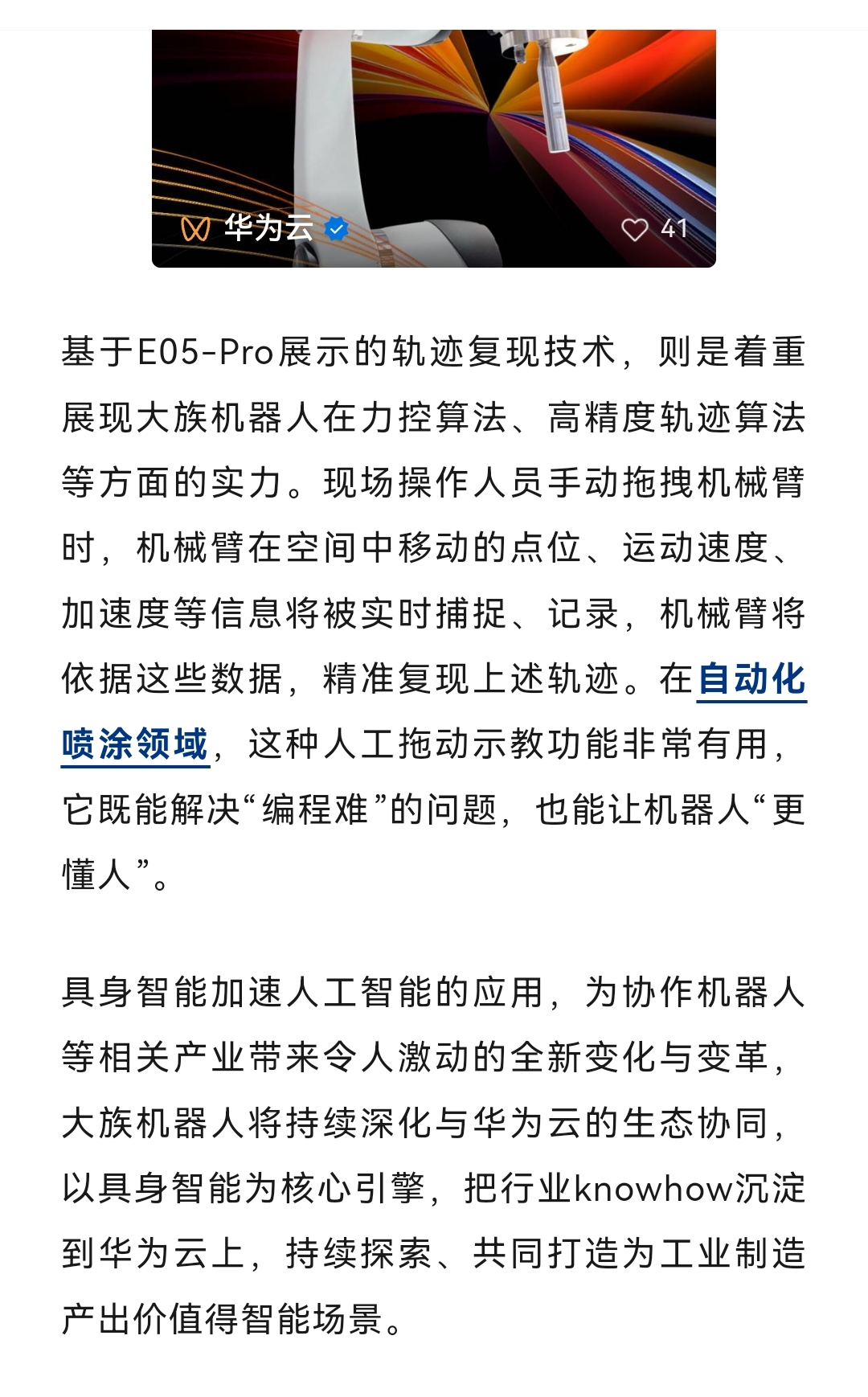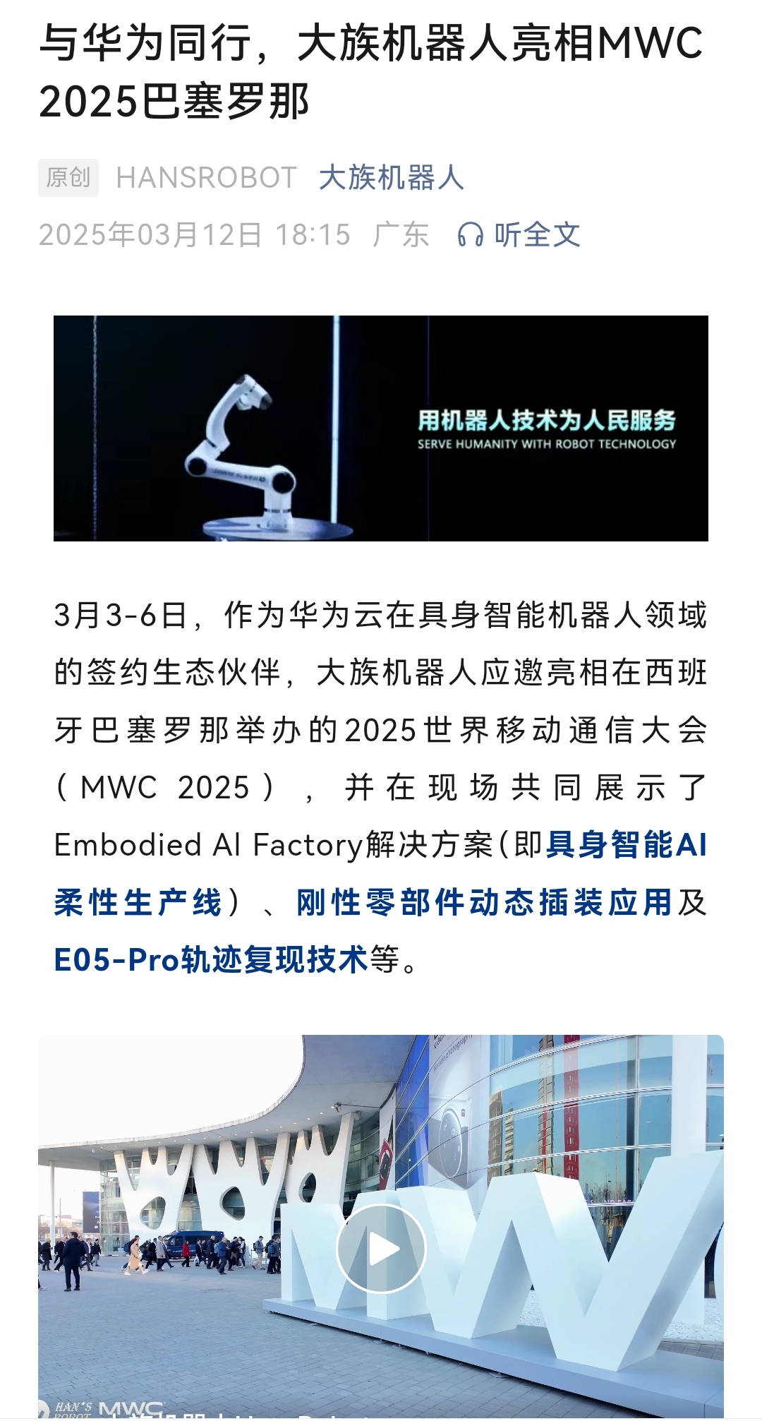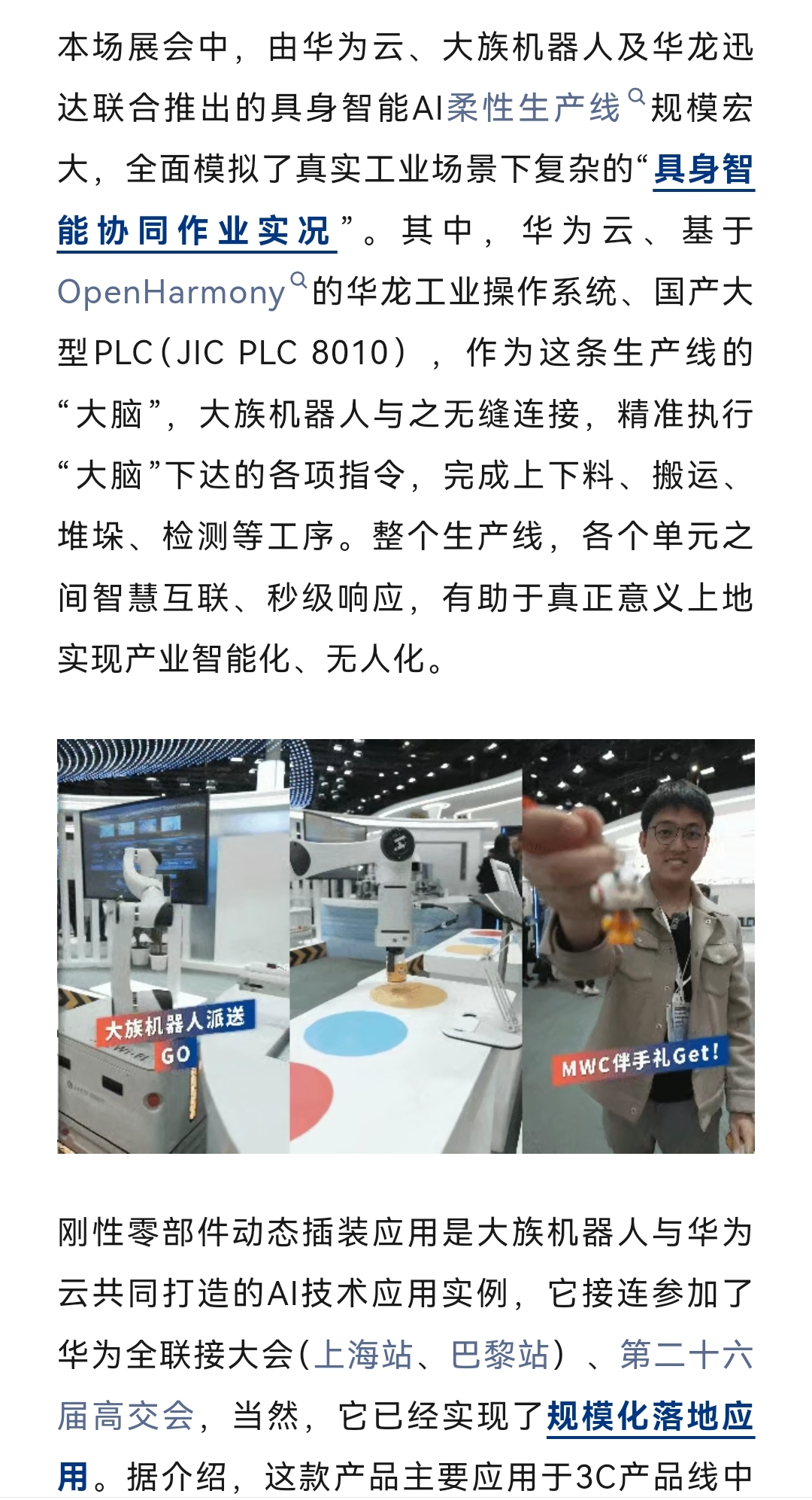 大族机器人华为云联合打造AI智能机器人亮相巴塞罗那,已经规模落地。