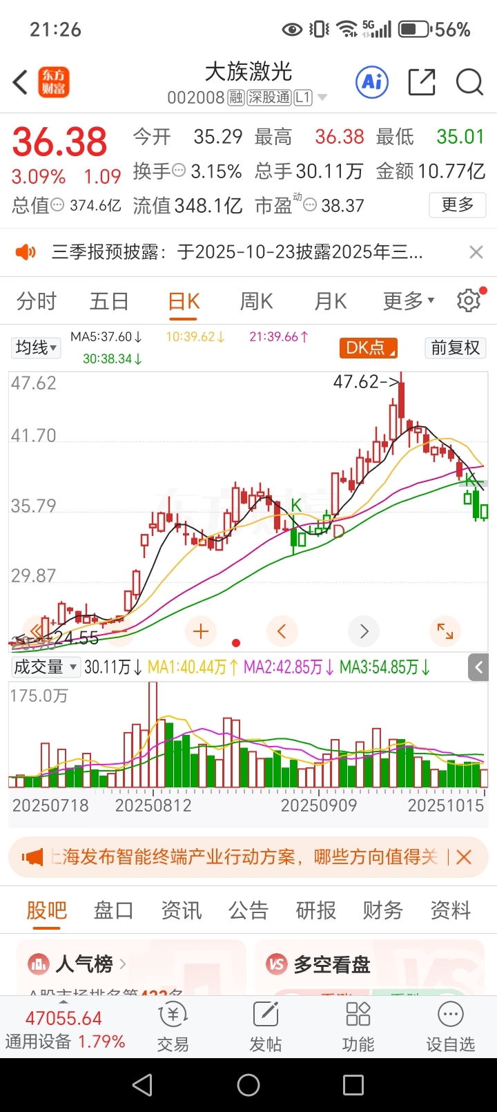 $大族激光(SZ002008)$ 这绿K和前面那那绿K多的么相似,这难道要止跌企稳了吗