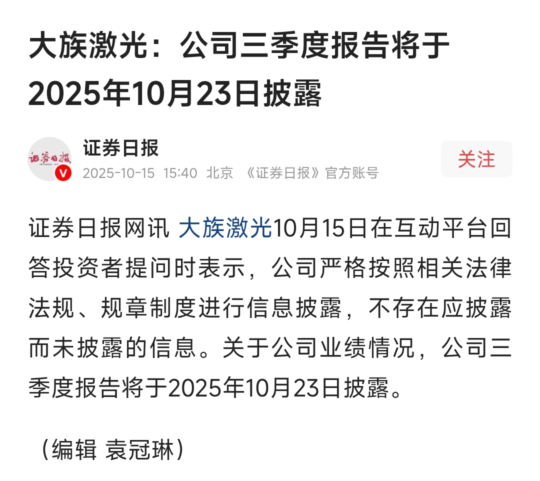 $大族激光(SZ002008)$ 今天晚上公布季报。