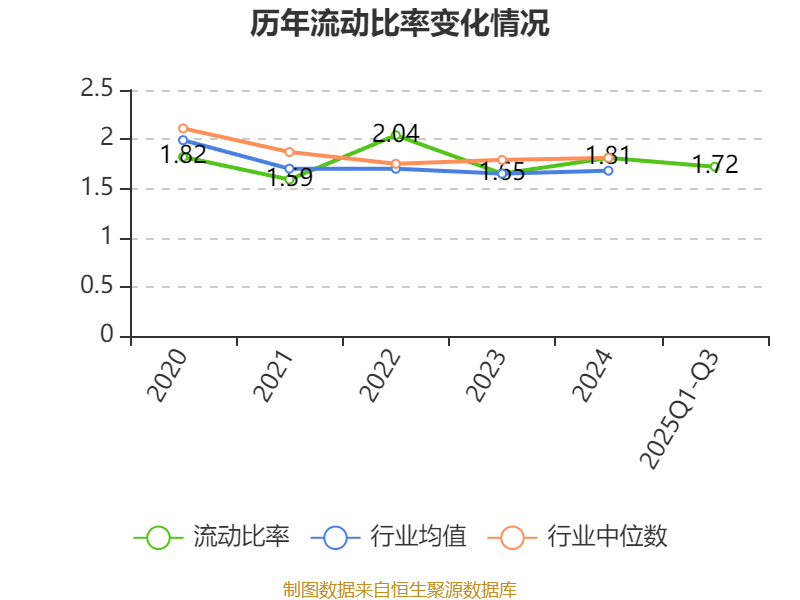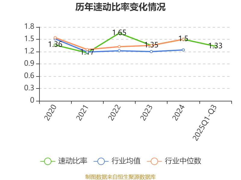 2025年前三季度,公司流动比率为1.72,速动比率为1.33。