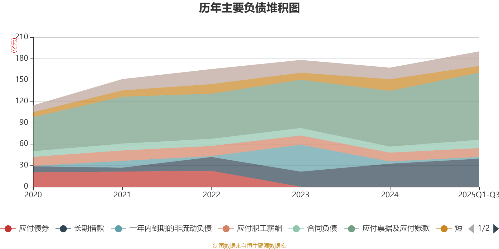 负债重大变化方面,截至2025年三季度末,公司短期借款较上年末减少42.04%,占公司总资产比重下降2.25个百分点;应付票据及应付账款较上年末增加20.28%,占公司总资产比重上升2.24个百分点;长期借款较上年末增加21.62%,占公司总资产比重上升1.04个百分点;合同负债较上年末增加38.53%,占公司总资产比重上升0.66个百分点。