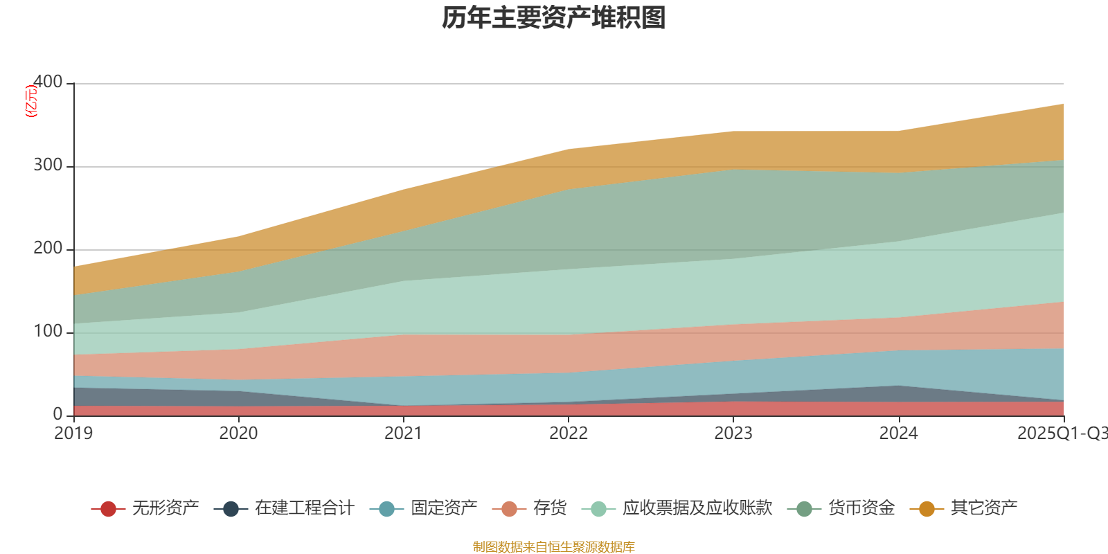 资产重大变化方面,截至2025年三季度末,公司货币资金较上年末减少22.99%,占公司总资产比重下降7.15个百分点;在建工程合计较上年末减少90.7%,占公司总资产比重下降5.31个百分点;固定资产较上年末增加47.37%,占公司总资产比重上升4.26个百分点;存货较上年末增加41.62%,占公司总资产比重上升3.38个百分点。