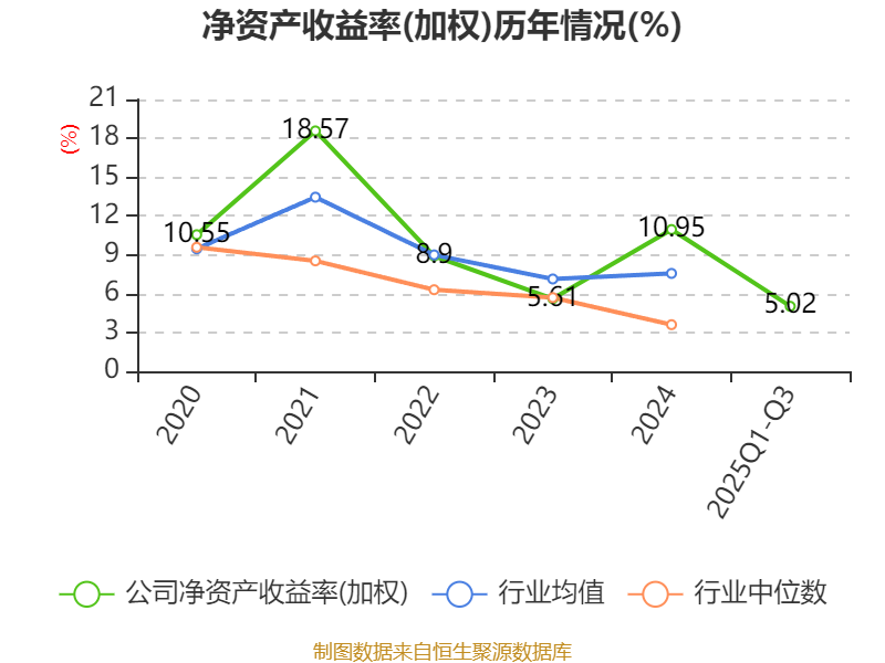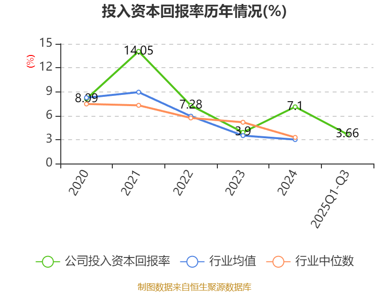 盈利能力方面, 2025年前三季度公司加权平均净资产收益率为5.02%,同比下降4.23个百分点。公司2025年前三季度投入资本回报率为3.66%,较上年同期下降2.53个百分点。
