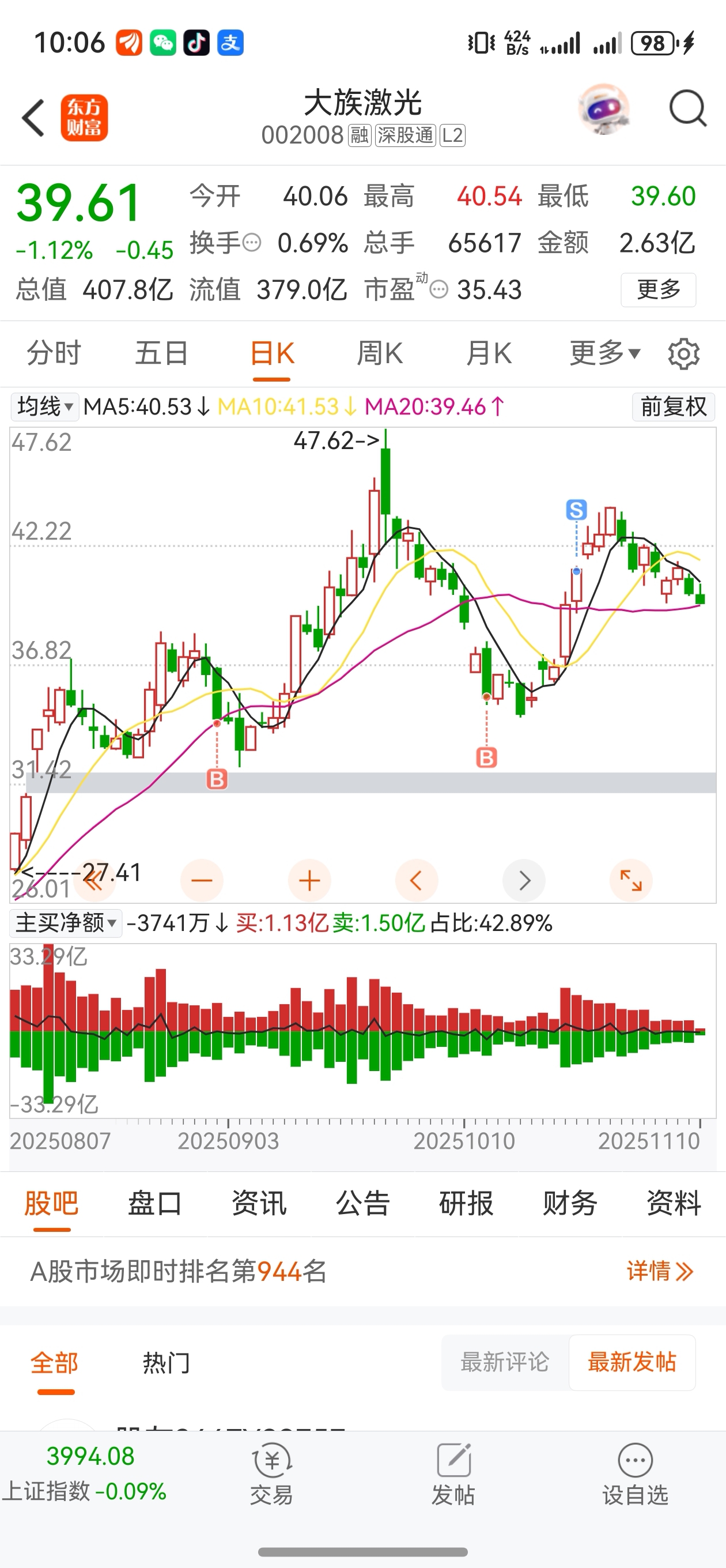 $大族激光(SZ002008)$ 你随便跌。呵呵