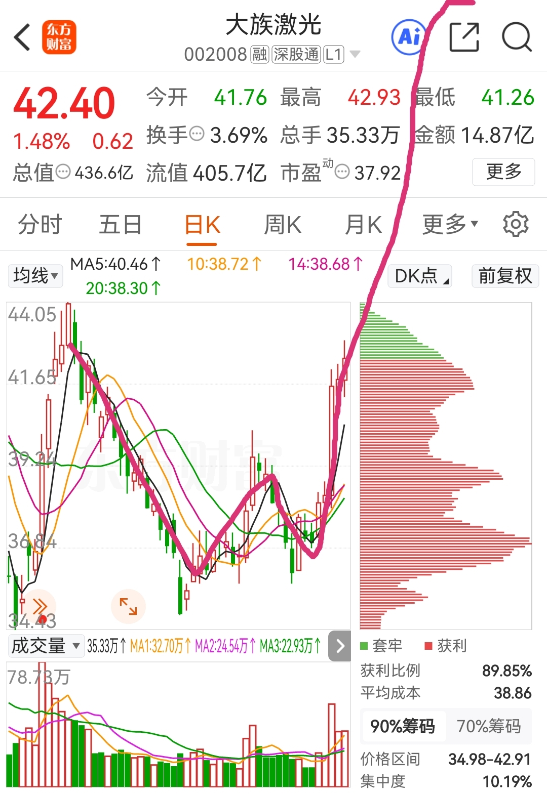 $大族激光(SZ002008)$ 大家点赞吧,图形我已经给大家画好