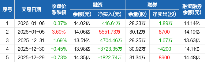 大族激光:融资净偿还416.61万元,融资余额14.02亿元(01-06)