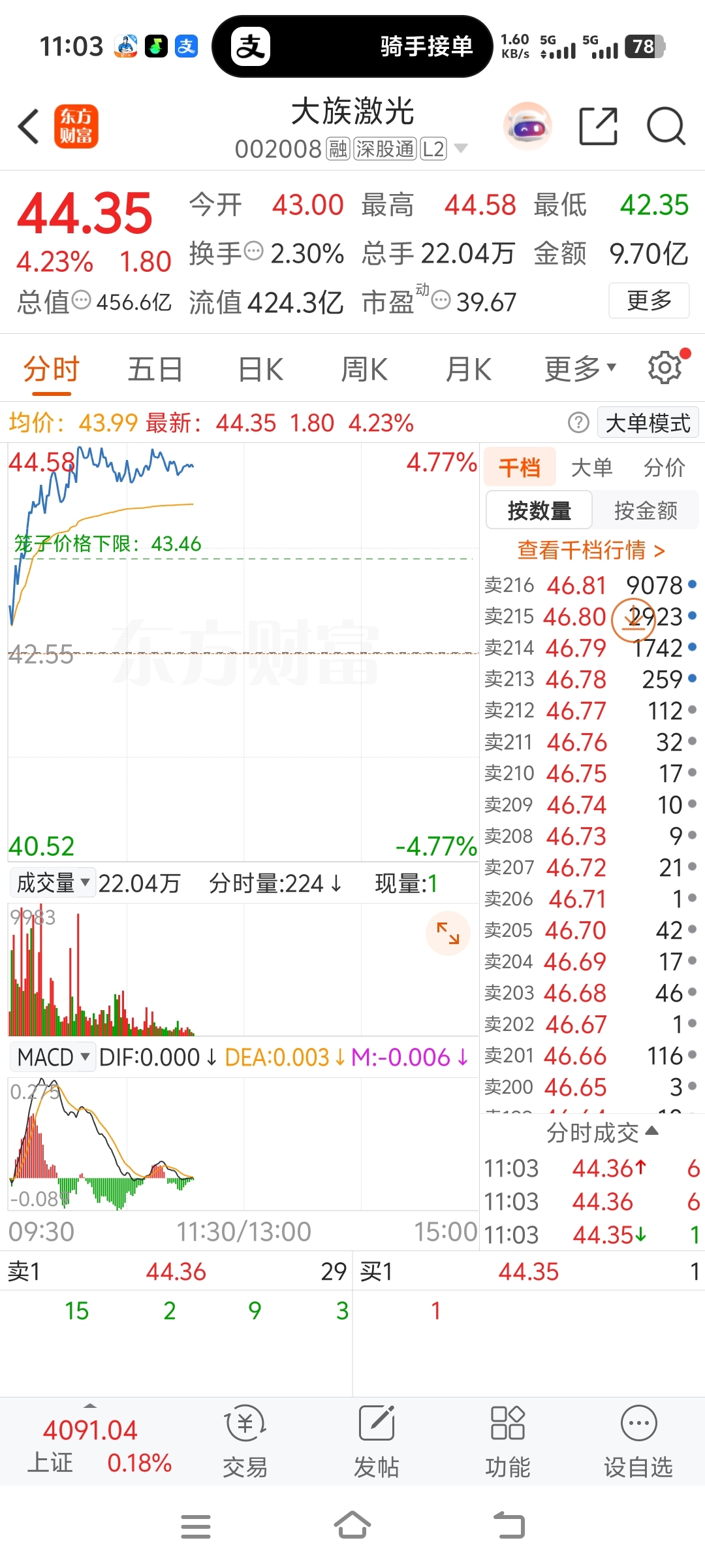 $大族激光(SZ002008)$ 还不涨停磨叽什么呢,涨停处压单也不多