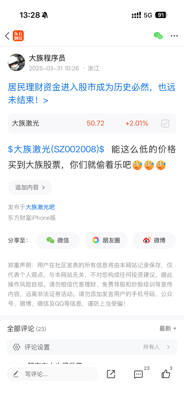 温馨提示: 1.根据《证券法》规定,禁止编造、传播虚假信息或者误导性信息,扰乱证券市场;2.用户在本社区发表的所有资料、言论等仅代表个人观点,与本网站立场无关,不对您构成任何投资建议。用户应基于自己的独立判断,自行决定证券投资并承担相应风险。《东方财富社区管理规定》