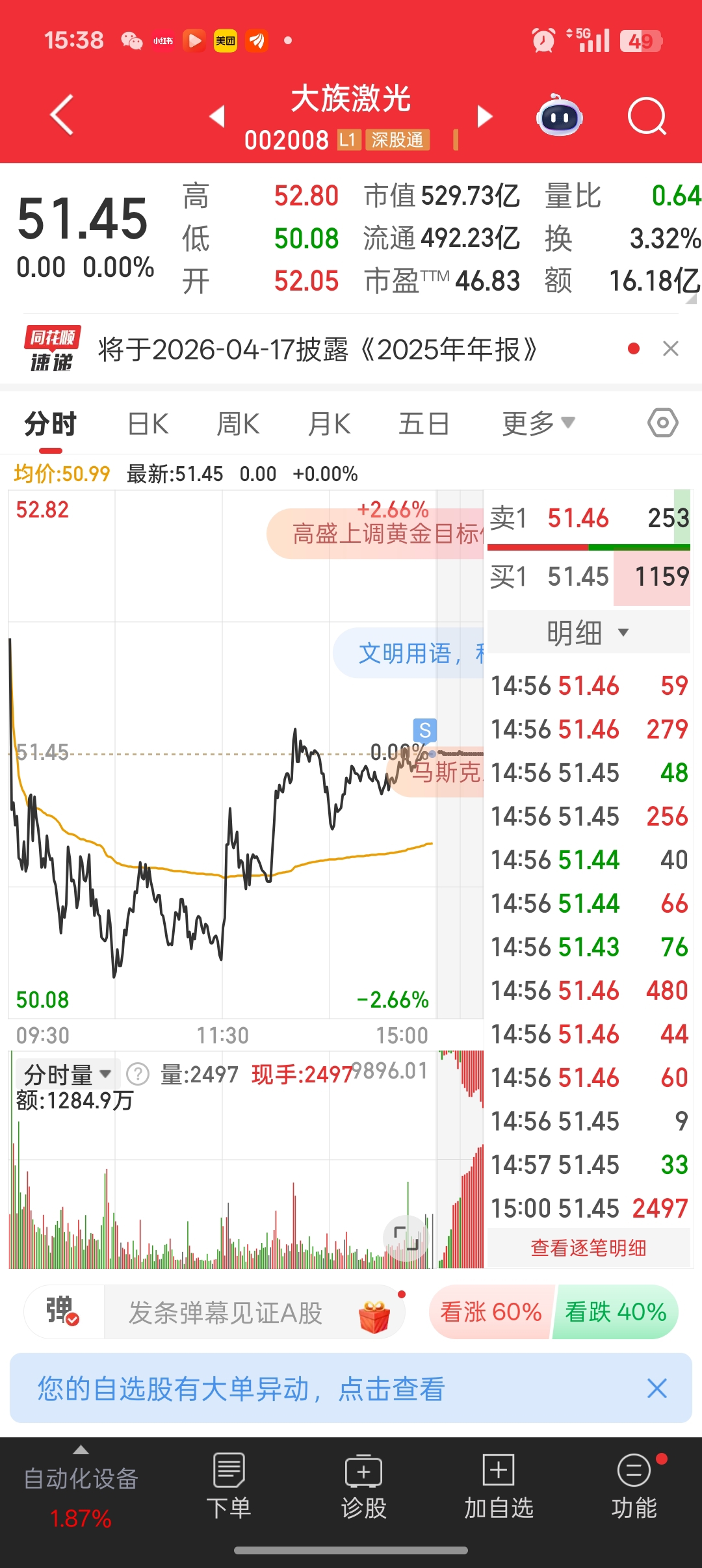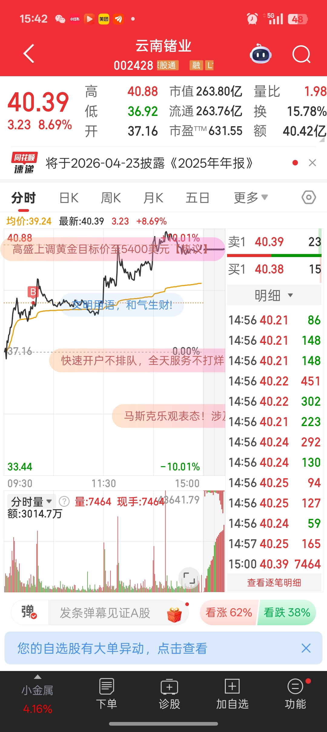 今天真差劲。尾盘走了。浪费行情。