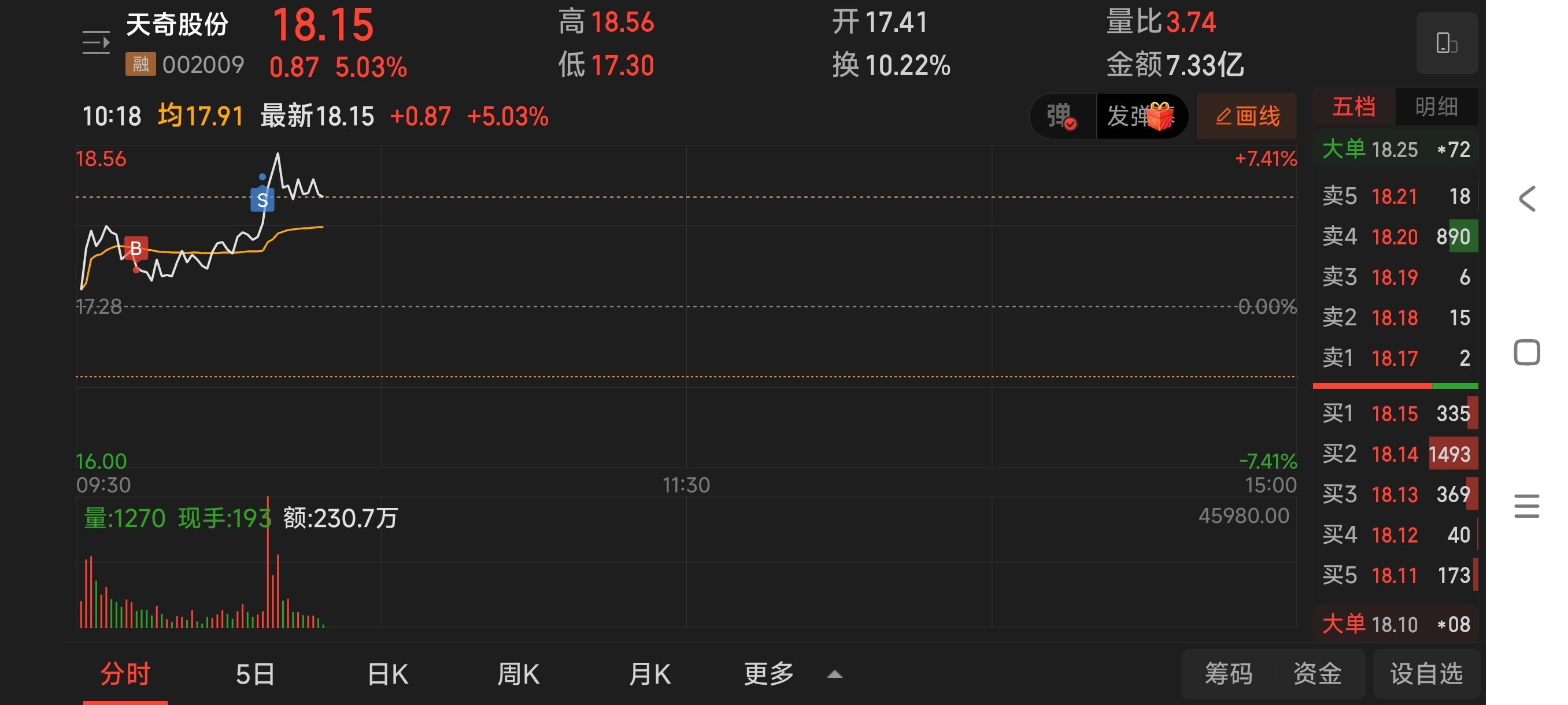 $天奇股份(SZ002009)$ 做了7毛的T,随你怎么走爱咋咋地!