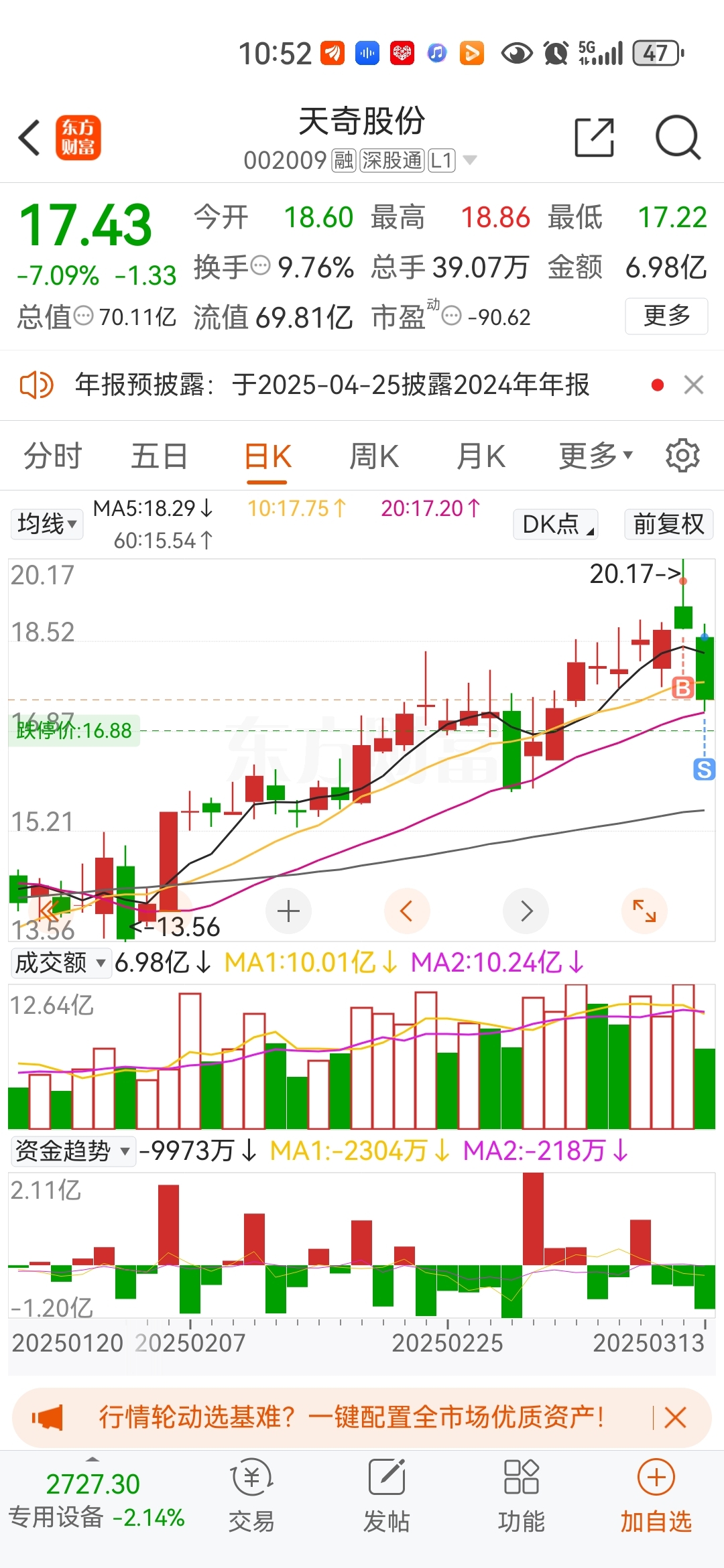 $天奇股份(SZ002009)$ mdpi,割肉割的屁股痛啊