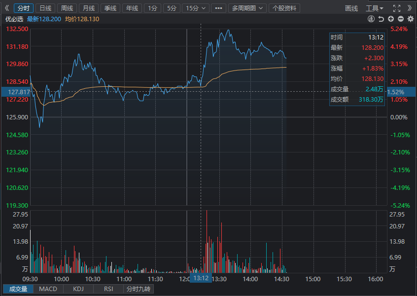 优必选13:12开始拉升,恒生指数也是13:12天奇股份则是13:13,上证指数也是13:13