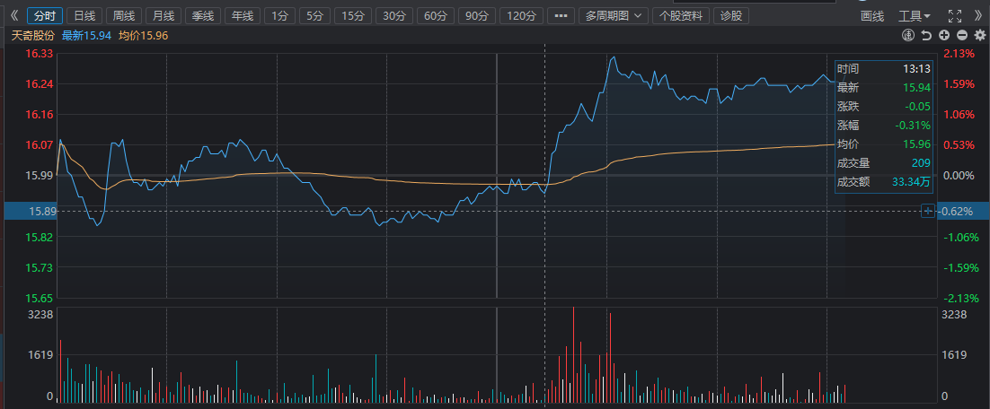天奇股份下午这波是跟的优必选上证指数下午这波是跟的恒生指数优必选13:12开始拉