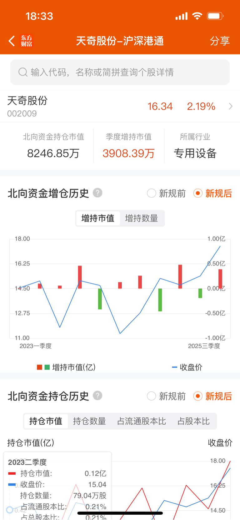 $天奇股份(SZ002009)$ @太平洋西岸首富 @豆丁包 @厦门胖哥 北向资金三季度加仓4000万。明天我果断加仓!